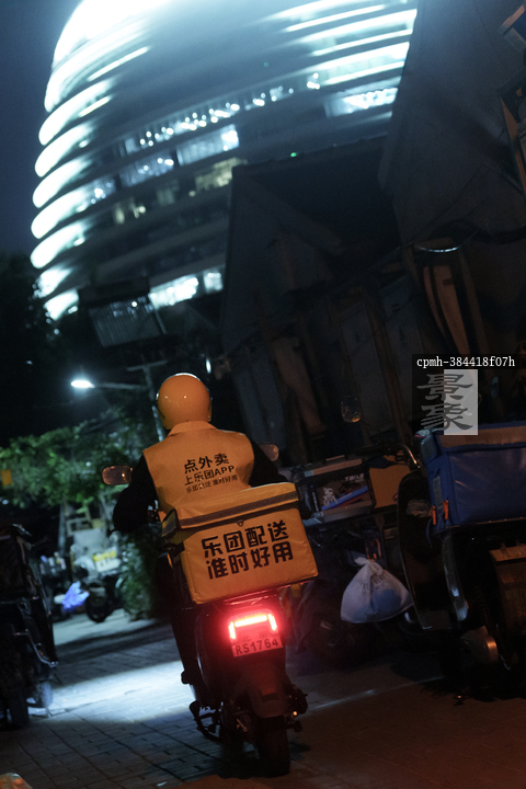 图片标题: 夜骑外卖员