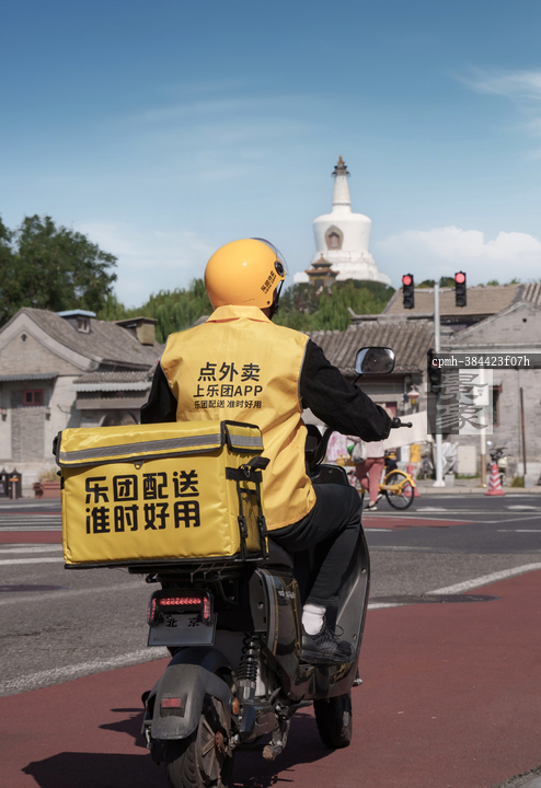 图片标题: 外卖骑手城市穿行