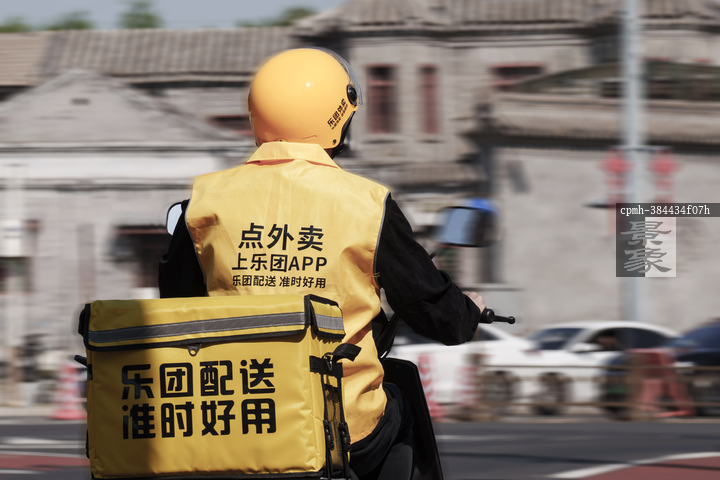 图片标题: 中年男子送外卖配送