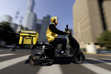 图片标题: 中年男子送外卖配送