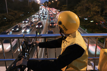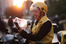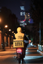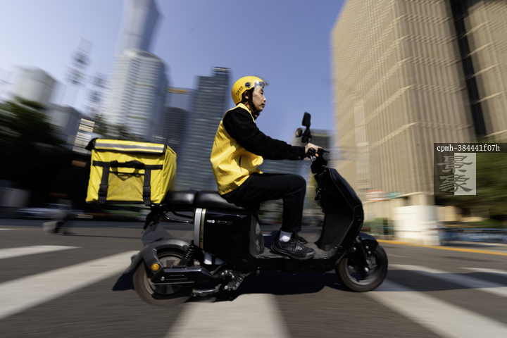图片标题: 中年男子送外卖配送