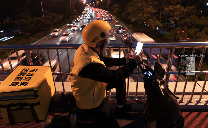 图片标题: 夜市外卖骑手