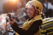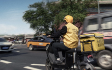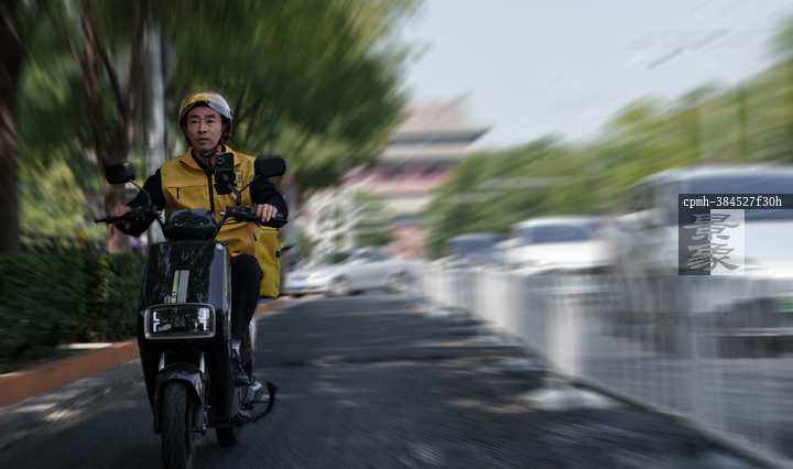 图片标题: 中年男子送外卖配送