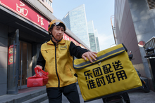 图片标题: 中年男子送外卖配送