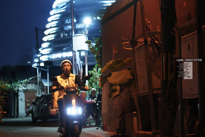 图片标题: 夜市外卖骑手