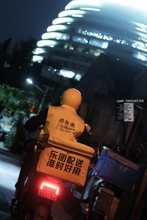 图片标题: 夜骑外卖员