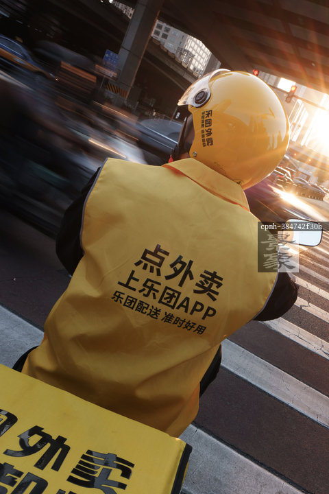 图片标题: 外卖骑手城市穿行