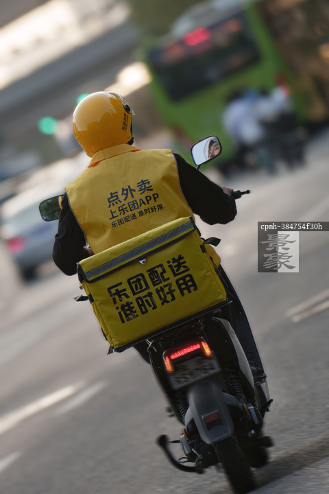 图片标题:     外卖骑手城市穿行