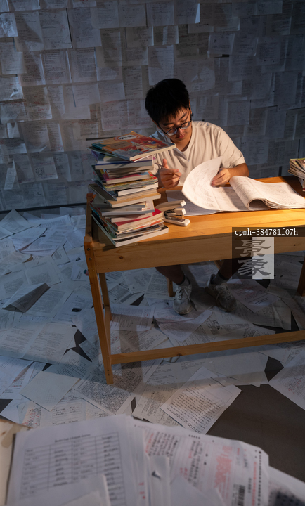 图片标题: 在茫茫书画埋头苦读学习压力巨大的学生
