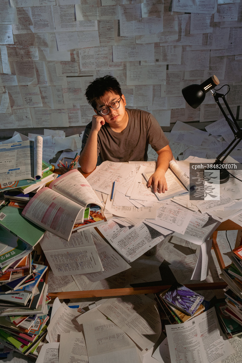 图片标题: 在茫茫书画埋头苦读学习压力巨大的学生