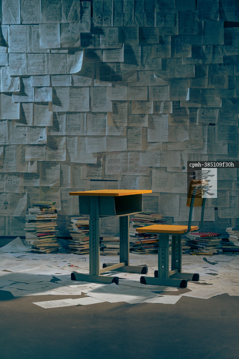 图片标题: 满地的教辅教材与书桌