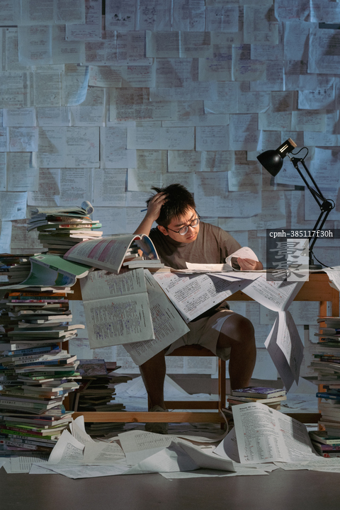 图片标题: 在茫茫书画埋头苦读学习压力巨大的学生