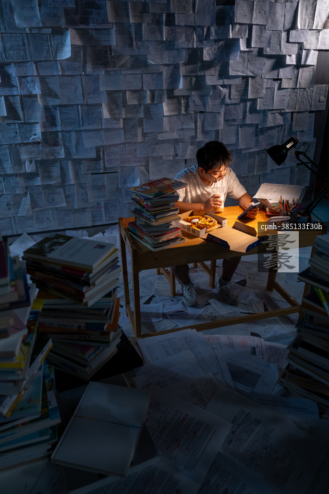 图片标题: 在茫茫书画埋头苦读学习压力巨大的学生