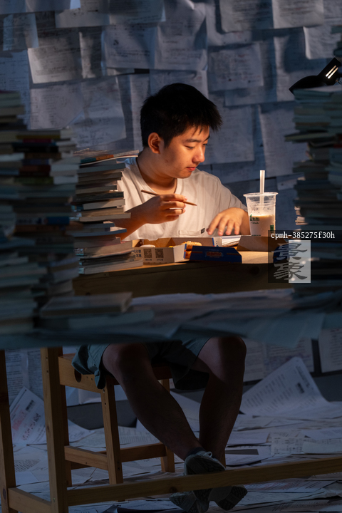 图片标题: 在茫茫书画埋头苦读学习压力巨大的学生