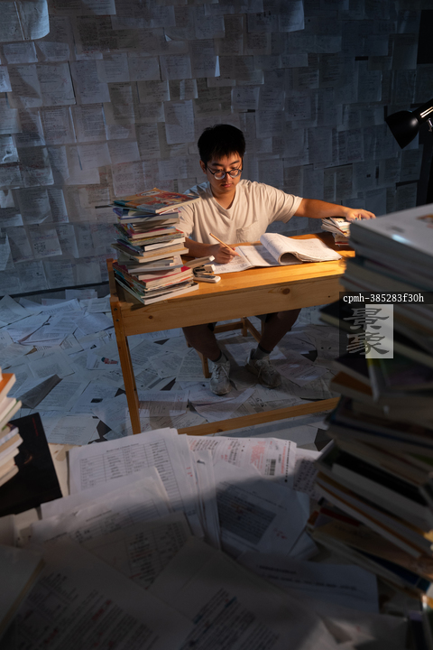 图片标题: 在茫茫书画埋头苦读学习压力巨大的学生