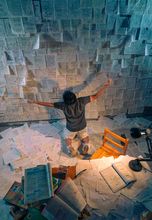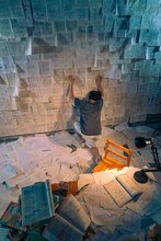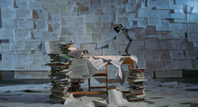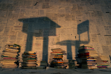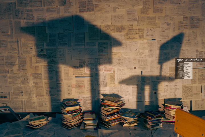 图片标题: 书堆与桌椅影子