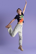 图片标题: 红色背景下的一位快乐青年女人