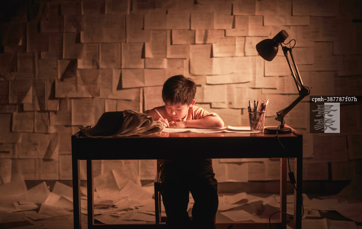 图片标题: 深夜伏案的少年