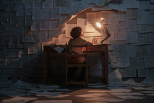 图片标题: 教室里专注学习的少女