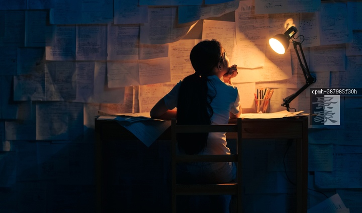 图片标题: 深夜书桌前的女孩