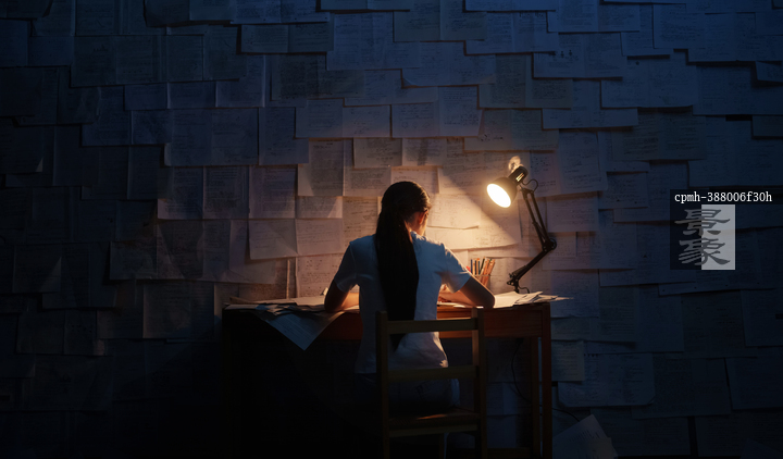 图片标题: 深夜书桌前的女孩