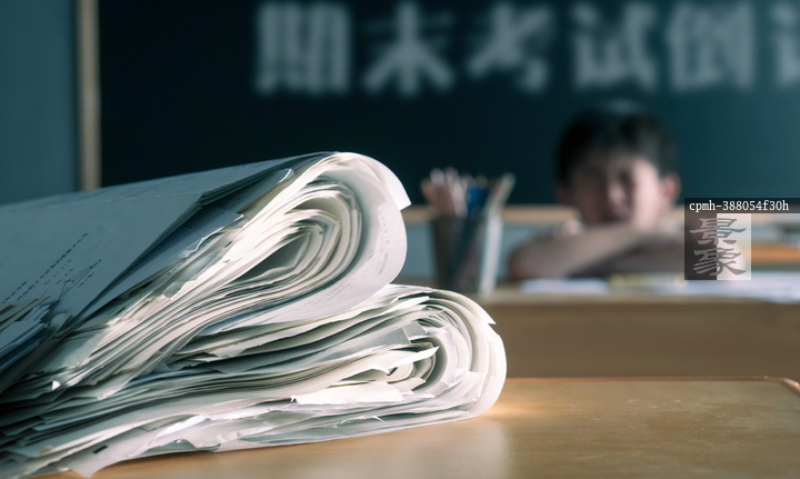 图片标题: 教室里的试卷创意静物