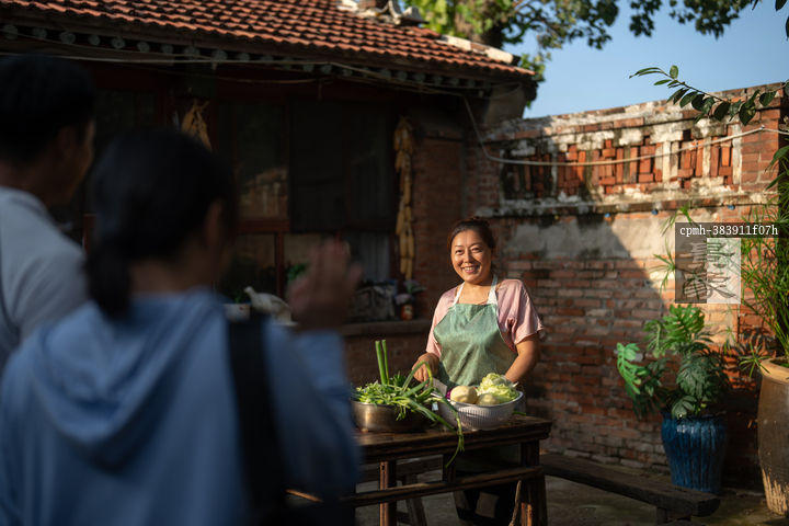 图片标题: 一位农妇做饭招待客人用餐