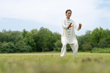 图片标题: 一个老年女人正在练太极拳