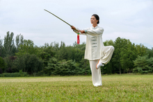 图片标题: 一个老年女人在公园练太极拳