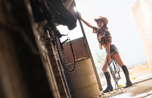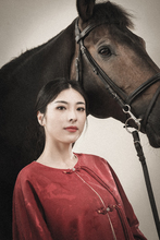 图片标题: 红裙女子与白马