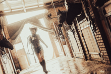 图片标题: 红裙女子与白马