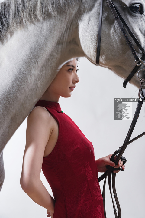 图片标题: 红裙女子与白马