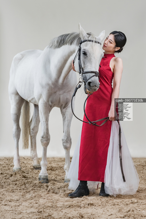 图片标题: 红裙女子与白马