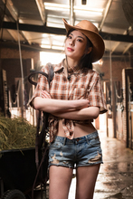 图片标题: 牛仔女孩在马厩