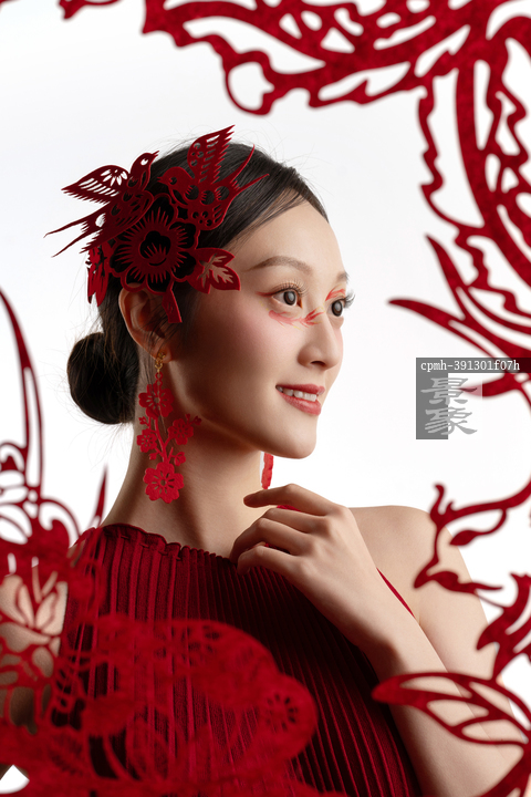图片标题: 窗花和古典传统东方美女创意人像