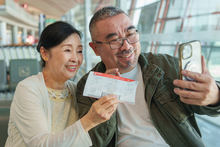 图片标题: 一对老年夫妇在机场