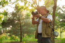 图片标题: 一对幸福的老年夫妇徒步旅行