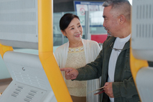 图片标题: 一对幸福的老年夫妇在机场候机厅