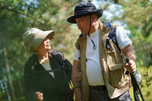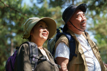 图片标题: 一对幸福的老年夫妇徒步旅行