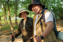 图片标题: 一对幸福的老年夫妇在机场展示机票