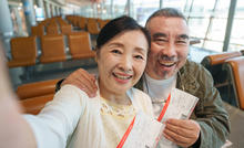 图片标题: 一对老年夫妇在机场