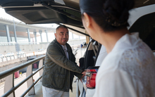 图片标题: 一对老年夫妇在机场