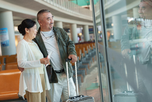 图片标题: 一对幸福的老年夫妇在机场候机厅