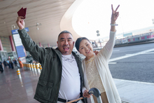 图片标题: 一对老年夫妇在机场