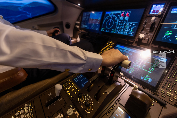 图片标题: 飞行员在驾驶舱内驾驶飞机