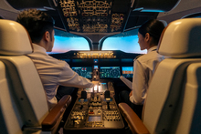 图片标题: 飞行员在驾驶舱内驾驶飞机