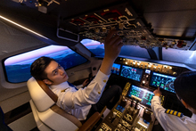 图片标题: 飞行员在驾驶舱内驾驶飞机