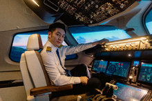 图片标题: 一位青年女乘务员指导乘客登机