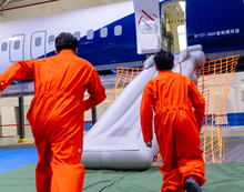 图片标题: 一位青年女乘务员照顾小女孩登机