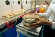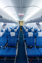 图片标题: 一位青年女乘务员在机舱内检查行李